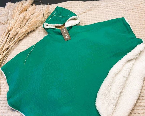Cape bien chaude en fausse fourrure mouton et coton hydrophile, couleur et tissu au choix lors de la commande par messagerie. Idéal pour les voyages en voiture. De 6 mois à 3 ans, adapté à la largeur de tête et longueur sur demande.